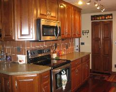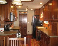 | Cherry is typically a uniform straight grained wood but may have a very unique curl in the grain. Naturally, it tends to be a reddish brown. It takes stain well and is easy to work with. Cherry is a very rich looking wood in any stain color. CLICK AN IMAGE BELOW TO ENLARGE |